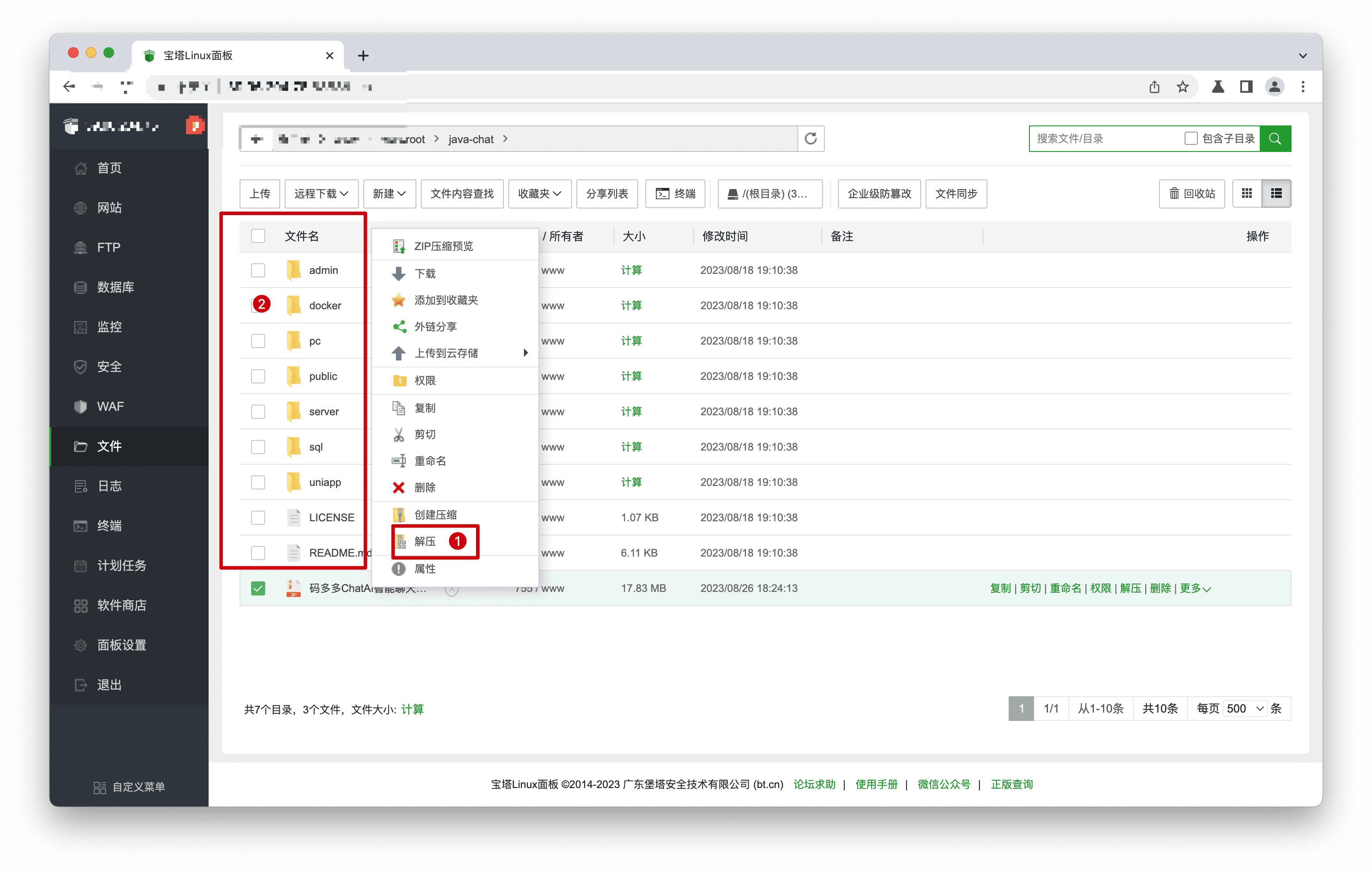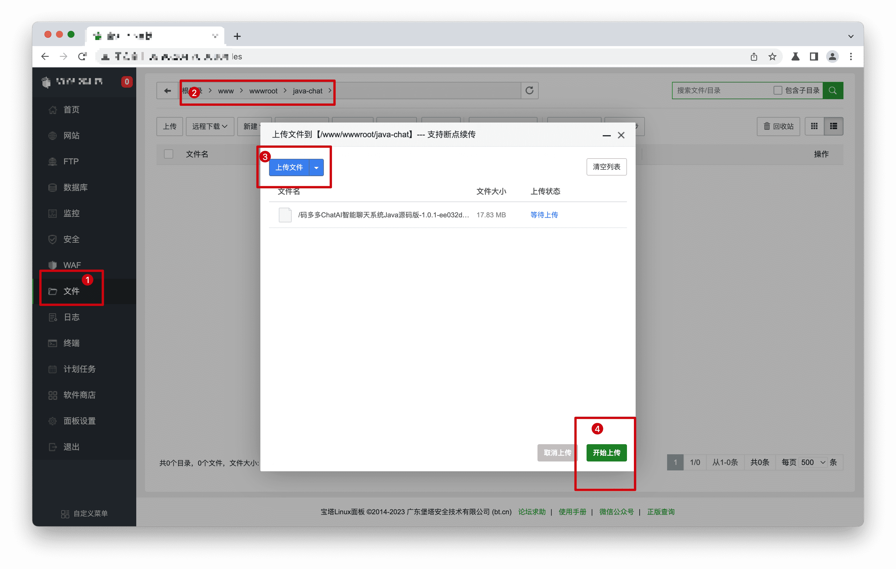 在/www/wwwroot/目录下新建项目文件夹,然后上传源码压缩包该目录,解析源码压缩包。